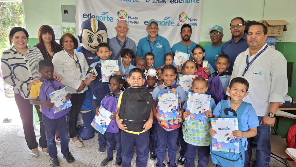 La empresa distribuidora de electricidad EDENORTE Dominicana, a través de su voluntariado “Manos que Iluminan” y el Departamento de Responsabilidad Social Corporativa, entregó cientos de mochilas con útiles escolares a estudiantes de escasos recursos en comunidades de su área de concesión, como parte de su programa de apoyo a la educación.